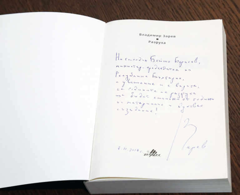 Премиерът Бойко Борисов връчи държавната награда „Св. Паисий Хилендарски“ за 2017 г. на писателя Владимир Зарев. Той бе удостоен с нея за изключителния си принос за развитието на националната културна идентичност и духовни ценности.