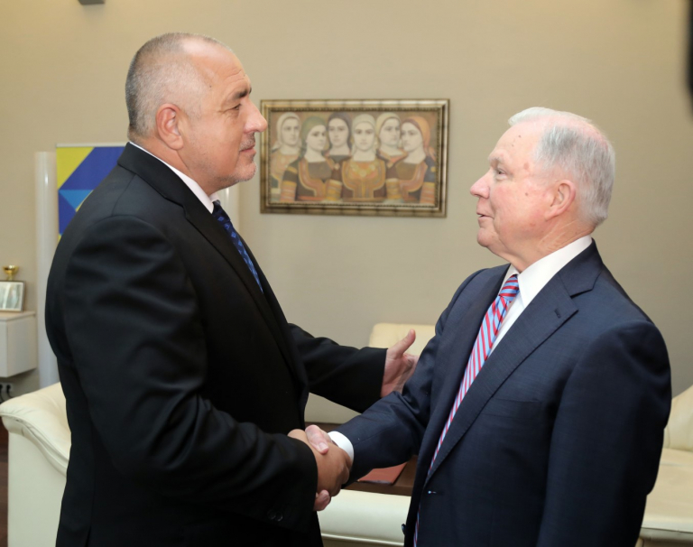 Премиерът Бойко Борисов се срещна с министъра на правосъдието и главен прокурор на САЩ Джеф Сешънс, който е на посещение в София. Фокус на разговора беше поставен върху споделения от двете страни ангажимент в борбата с международния тероризъм, трафика на наркотици, трафика на хора и защита на киберсигурността. Борисов и Сешънс дискутираха също така други области на двустранното сътрудничество в правоприлагането, включително екстрадициите и взаимната правна помощ.