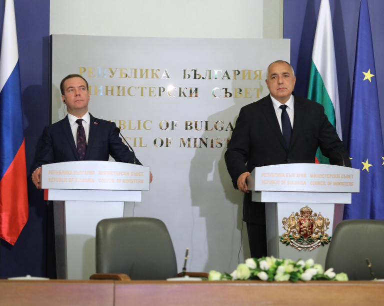 Министър-председателят Бойко Борисов посрещна председателя на правителството на Руската федерация Дмитрий Медведев и водената от него делегация на площад „Александър Невски“, след което гостът поднесе венец на Паметника на незнайния войн. Програмата на посещението продължи със среща на четири очи между двамата премиери в сградата на Министерския съвет и пленарни разговори между двете делегации.