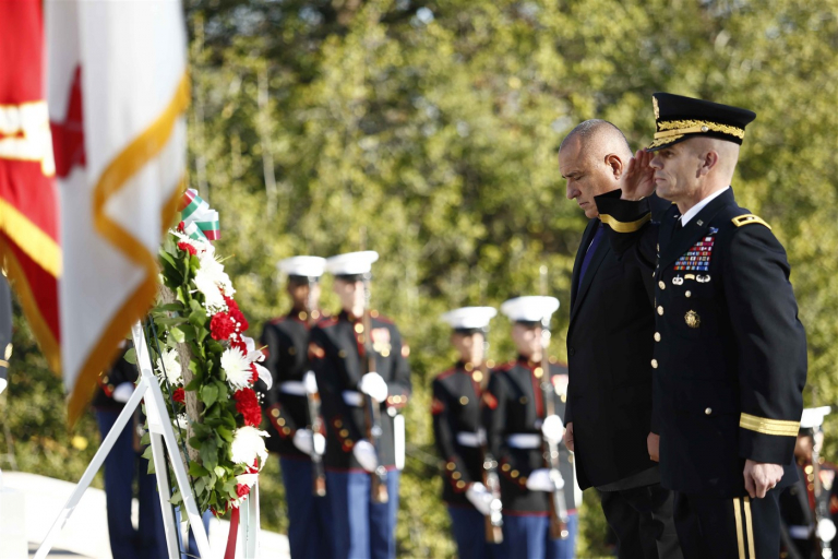 With a 21-gun salute Prime Minister Borissov was welcomed at the Tomb of the Unknown Soldier at the Arlington National Cemetery, Virginia. Under the sounds of the anthems of Bulgaria and the United States Borissov laid a wreath at the Tomb.